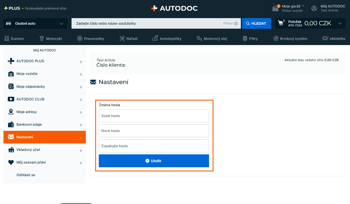 - Přejdi na kartu Nastavení. Zadej staré heslo a vytvoř si nové. Změny ulož.