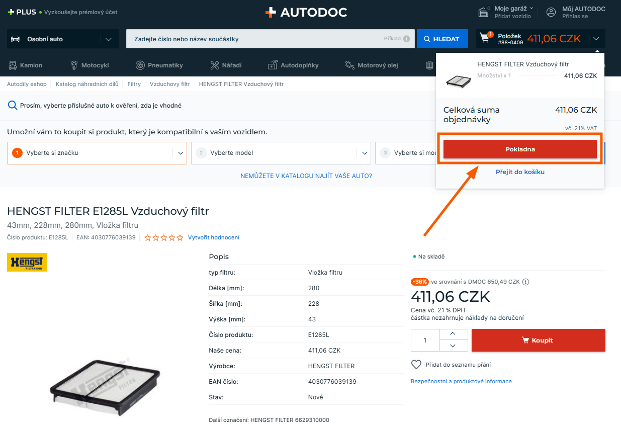- Přidej si položky do košíku. Klikni na Pokladna. Zadej údaje potřebné pro registraci.